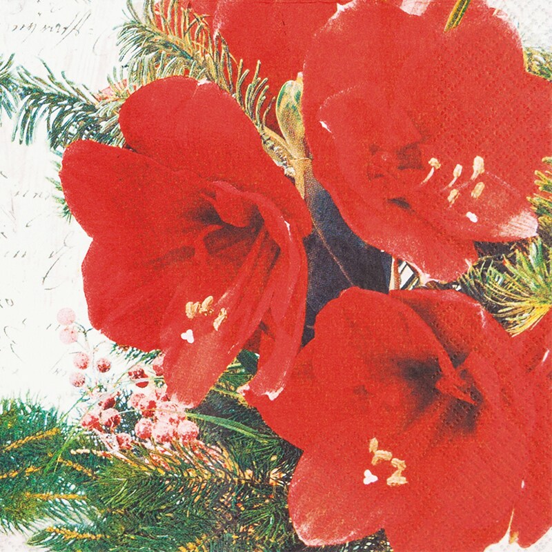 Home Fashion, Red Amaryllis, Lunch-Servietten aufgefaltetes Maß 33 cm x 33 cm, im Viertelfalz, 20 Stück pro Pack