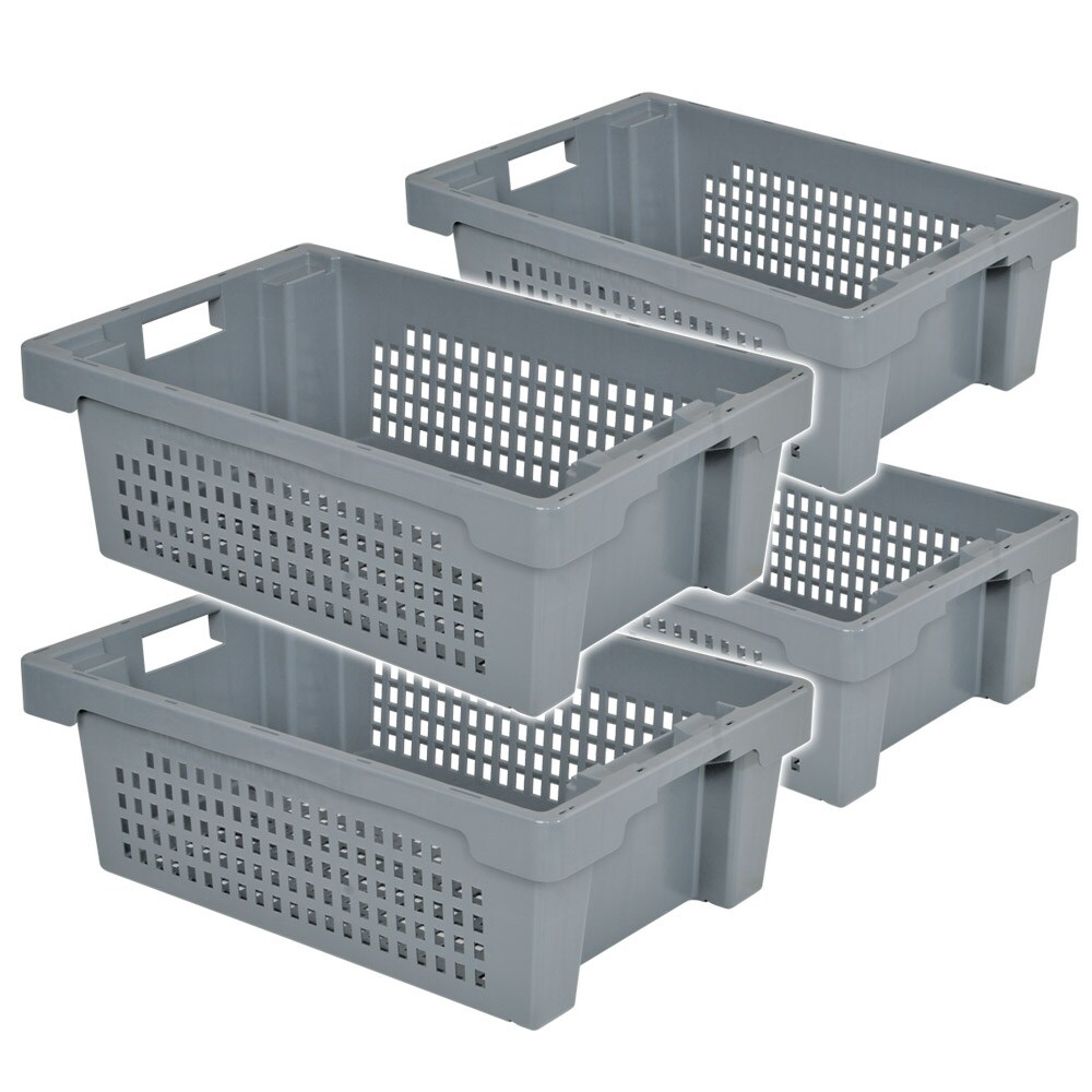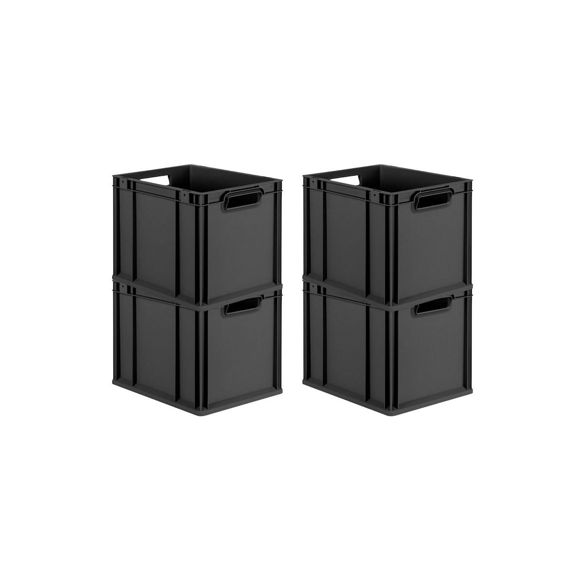 PROREGAL SuperSparSet 4x Eurobox NextGen Grip, HxBxT 32x30x40cm, 30 Liter, Griffe offen, Schwarz, Eurobehälter, Transportbehälter
