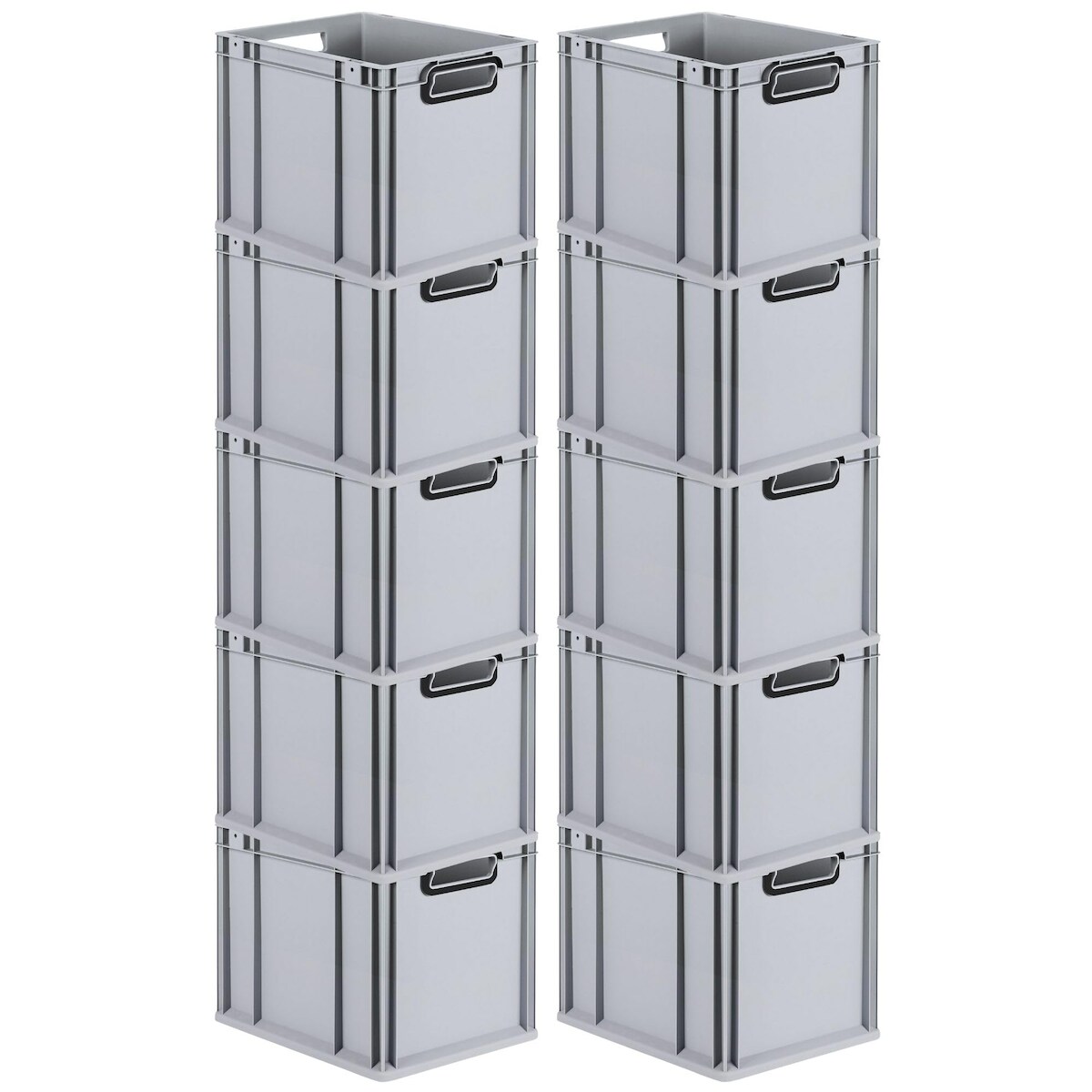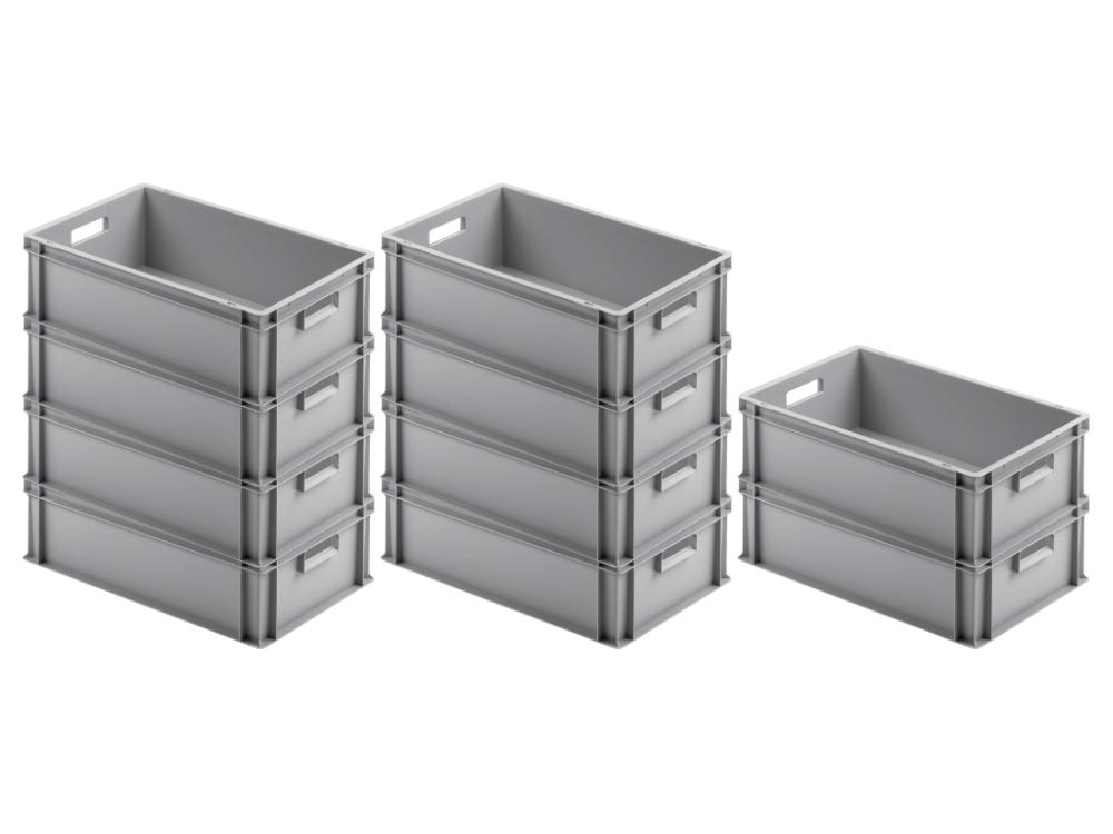 PROREGAL SparSet 10x Eurobox NextGen Color, HxBxT 32x30x40cm, 30 Liter, Griffe schwarz offen, Grau, Eurobehälter, Transportbehälter