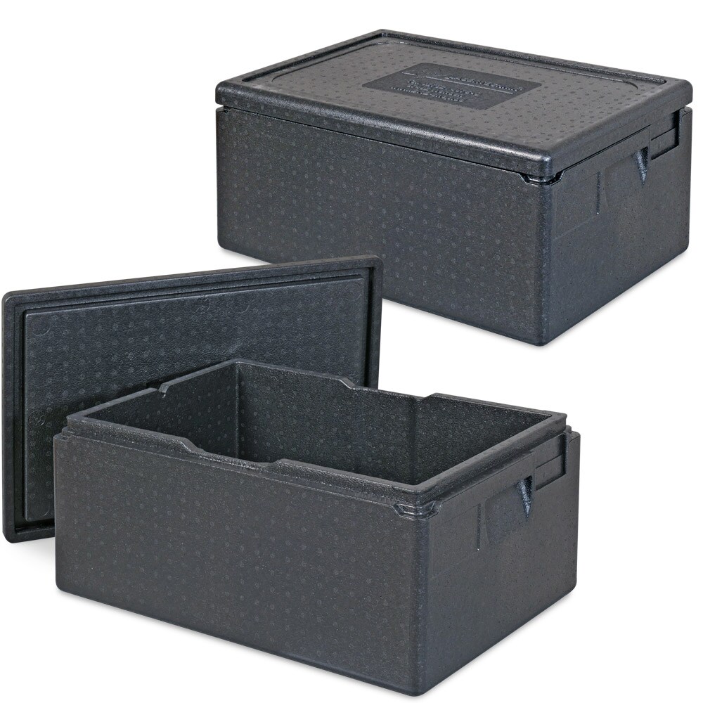 Thermo Future Box Frontlader PIZZA 35 x 39, Isolierbox schwarz mit Fronttür und Tragegriff, 27 Liter, robust, nachhaltig aus EPP