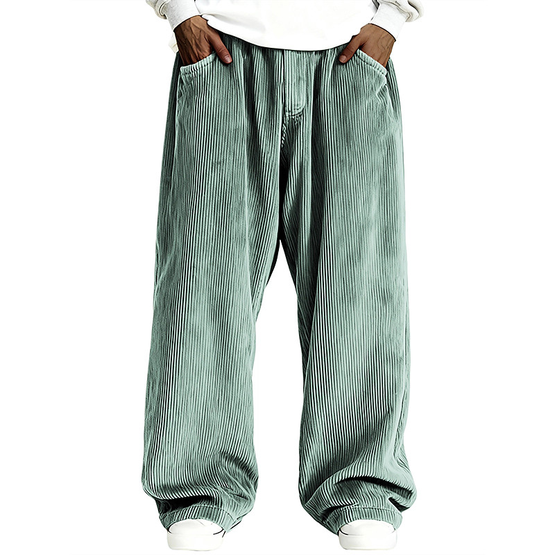 Men's Trousers Corduroy Pants Baggy Pants Casual Pants Straight Leg Sweatpants Drawstring Wide Leg Solid Color Comfort Full Length Casual Daily Outdoor Fashion Classic Style Loose Fit Black White