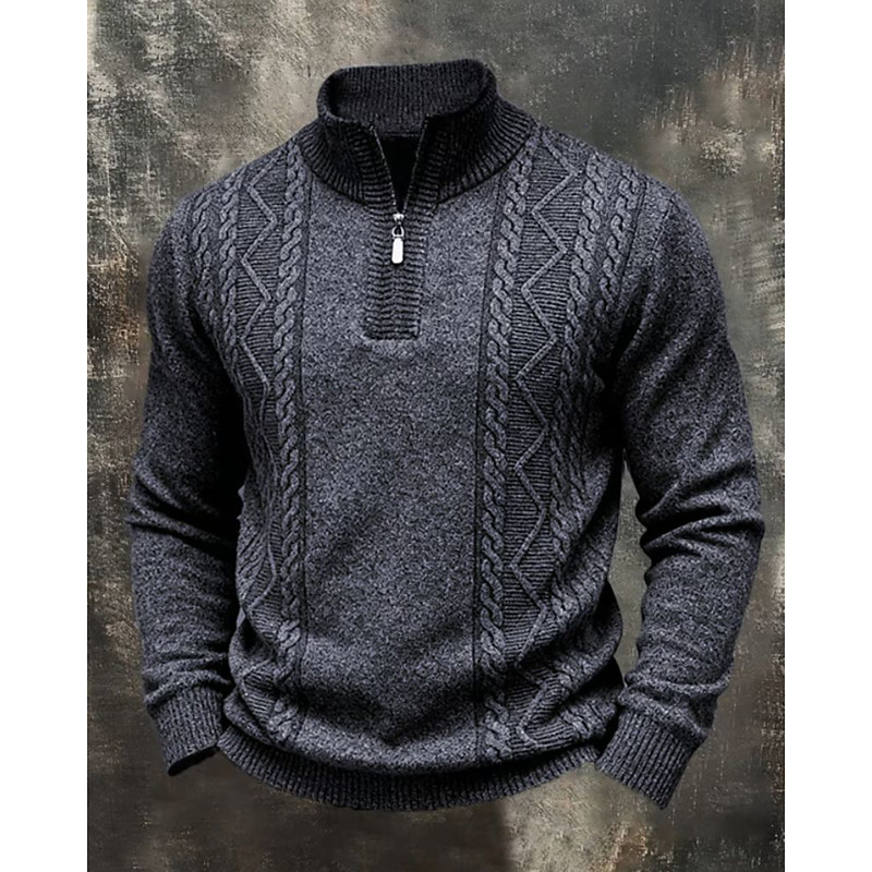 Men's Pullover Sweater Jumper Zip Sweater Knitwear Ribbed Knit Zipper Knitting Faith Quarter Zip Retro Vintage Outdoor Daily Clothing Apparel Fall Winter Royal Blue Brown S M L