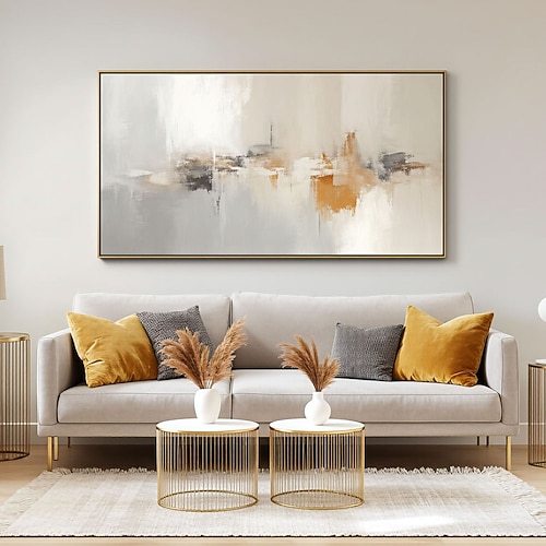 Pittura a olio grigio beige dipinta a mano moderna astratta pittura astratta dorata dipinta a mano arte da parete minimalista pittura da parete in acrilico arte da parete incorniciata pittura in