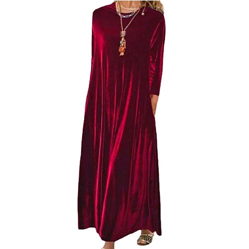 Per donna Abito Midi Vestito Casual Moda Classico Moderno All'aperto Vacanza Ferie Vestibilità regolare Semplice Manica Lunga Girocollo Nero Vino Blu Verde scuro Estate