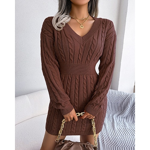 Per donna Mini Abito Abito in maglia Attillato Tubino Moda Moderno Vacanza Ferie Weekend Vestibilità regolare Semplice Manica Lunga Scollo a V Nero Bianco Blu Marrone Primavera Autunno