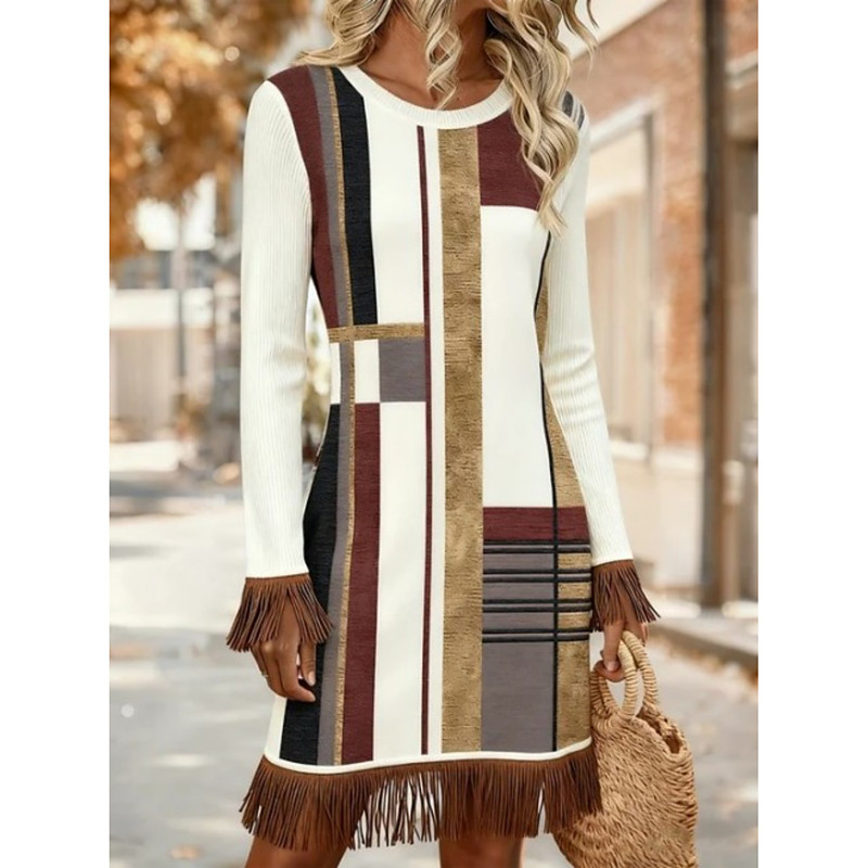 Women's Mini Dress Corset Dress Vacation Casual Boho Birthday Daily Holiday Regular Fit Graphic Paisley Tribal Long Sleeve Crew Neck Black Gold Gray Spring Fall Winter