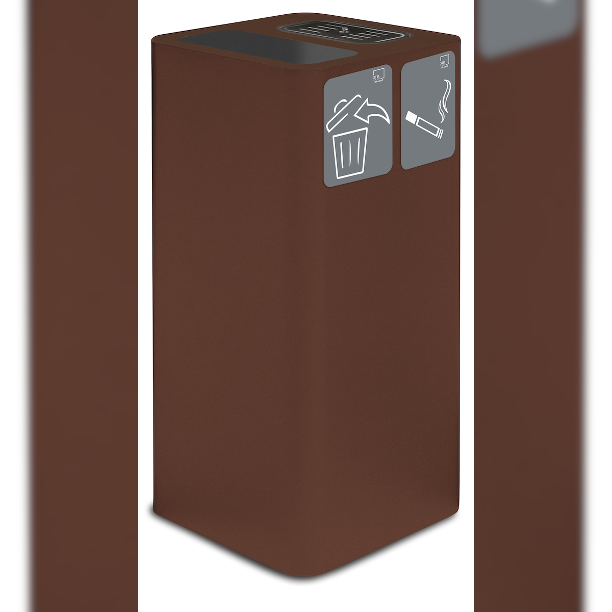 Stil Casa PURE Abfallbehälter mit Aschenbecher, lackierter Stahl, 38x38xh. 80 cm, zwei magnetische Piktogramme enthalten, 100 Liter, corten.