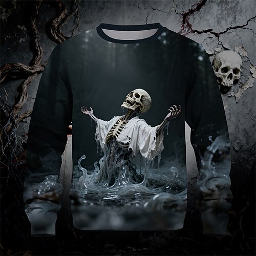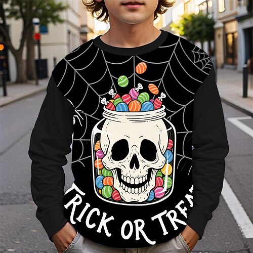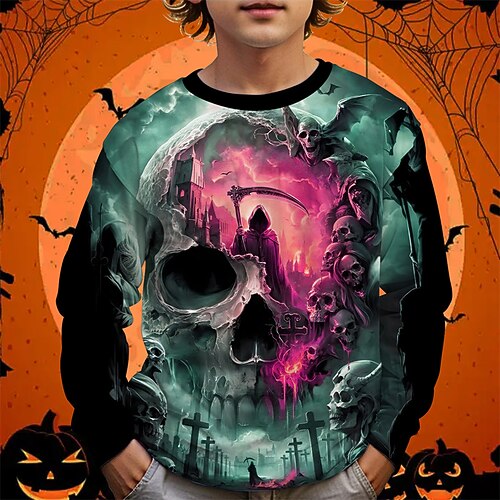 Halloween Jungen 3D Schädel Sweatshirt Langarm Frühling Herbst Mode Basic Kinder 4-12 Jahre Rundhalsausschnitt Outdoor Lässig Täglich Normale Passform
