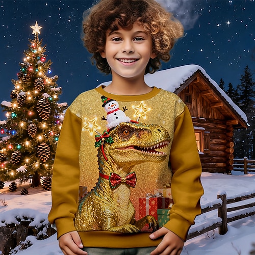 Jungen 3D Dinosaurier Schneemann Sweatshirt Langarm Frühling Herbst Mode Basic Kinder 4-12 Jahre Rundhalsausschnitt Outdoor Lässig Täglich Normale Passform