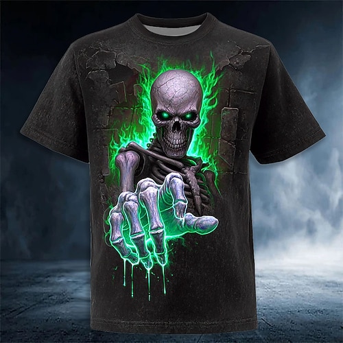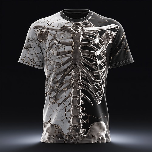 Per uomo Illusione ottica 3D Osso Scheletro Maglietta Manica Corta maglietta Stampa 3D Girocollo Camicia Esagerato Designer Gotico Feste Quotidiano Ferie Argento Grigio scuro Grigio Estate Primavera