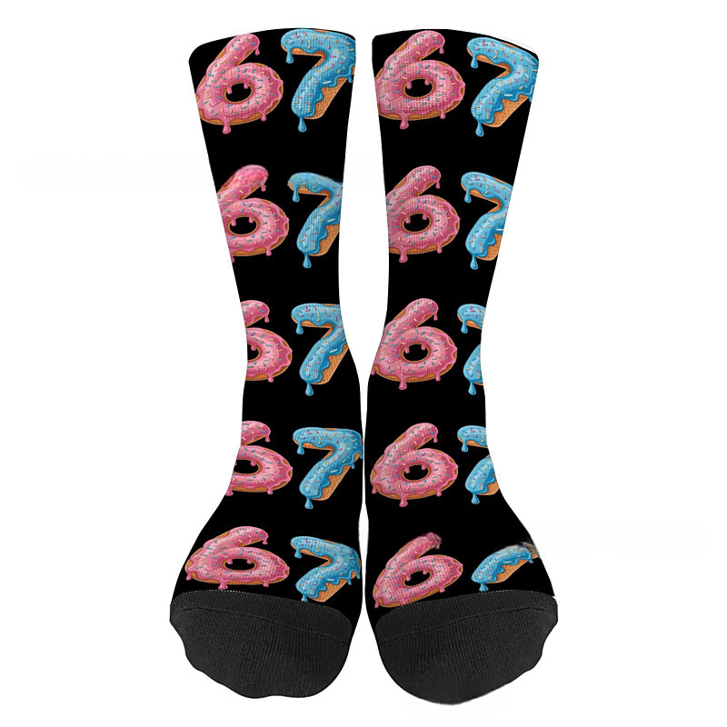 Fun Six Seven Meme Design Socks Creative 67 Pattern Novelty Casual Crew Socks with Soft Comfortable Fabric for Daily Wear Gift and Fashion Style