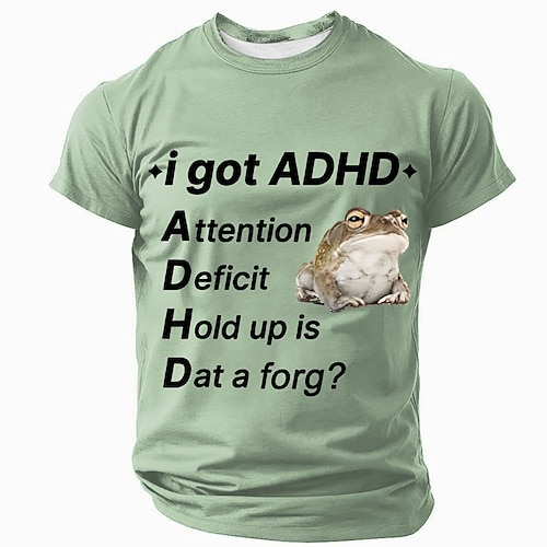 Ich habe ADHS (Aufmerksamkeitsdefizit). Moment mal, ist das ein Witz? Sarkastischer Humor, Krötengrafik, Herren-T-Shirt mit Rundhalsausschnitt, hellblaues Oberteil, Bekleidung, Größen S, M, L, XL,