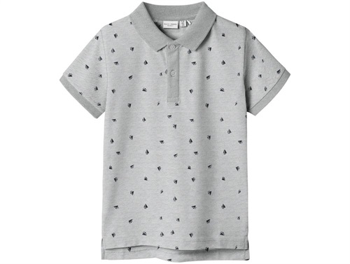Name It Polo T-shirt Lys Grå Meleret Med Båd Print - Str. 7-8y 122/128cm