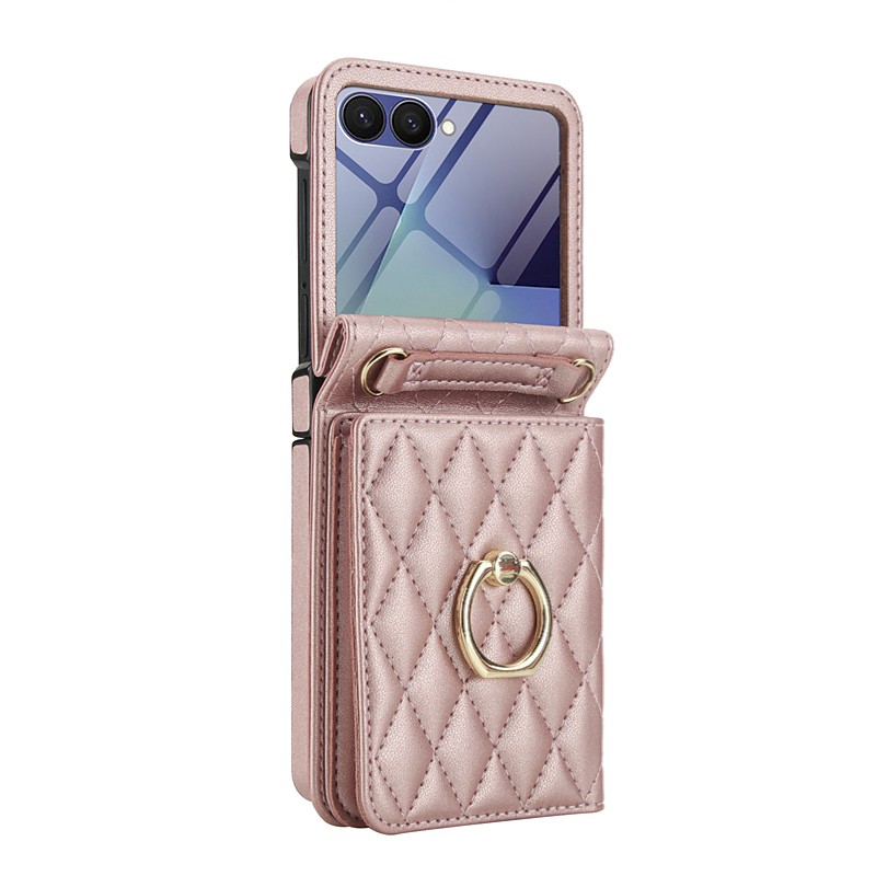 Phone Case For Samsung Galaxy Z Flip 7 Z Flip 6 Z Flip 5 Z Flip 4 Z Flip 3 Flip Cover with Screen Protector Ring Holder Shockproof Retro PU Leather
