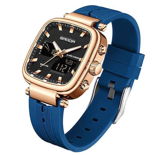 Orologio elettronico da uomo Sanda, nuovo di zecca, 6282, doppio display, sportivo, impermeabile, con cronometro a LED, da uomo