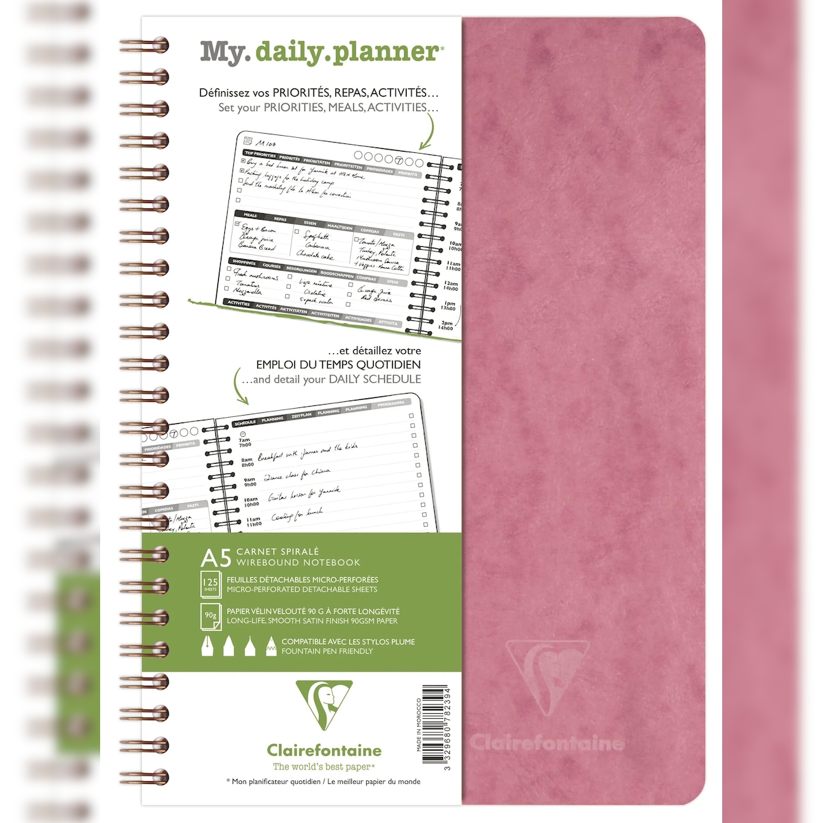 Clairefontaine 5x Age Bag, My.daily.planner, Spiralbuch A5, 250 abtrennbare Seiten (125 Blatt) 90g - Antikrosa 782396C