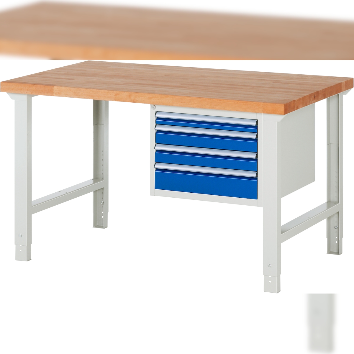 PROREGAL Werkbank Serie 7000 - Modell 7132 | HxBxT 79-114x150x90cm | 4x Schublade | Schubladenmaße 1x60 + 2x90 + 1x120mm