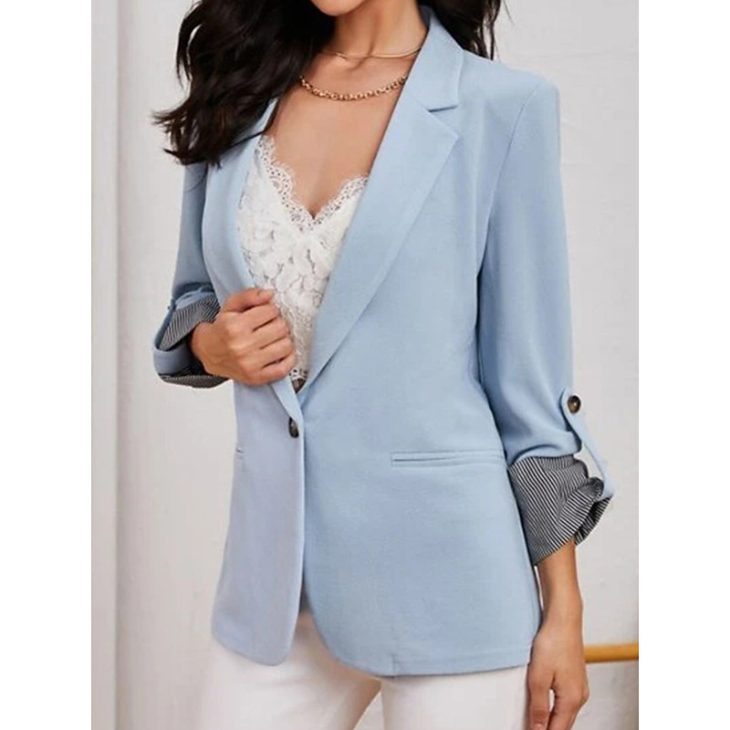 Women's Blazer Work Stripe Solid Color Warm Stylish Regular Fit Outerwear Long Sleeve Spring Light Blue S