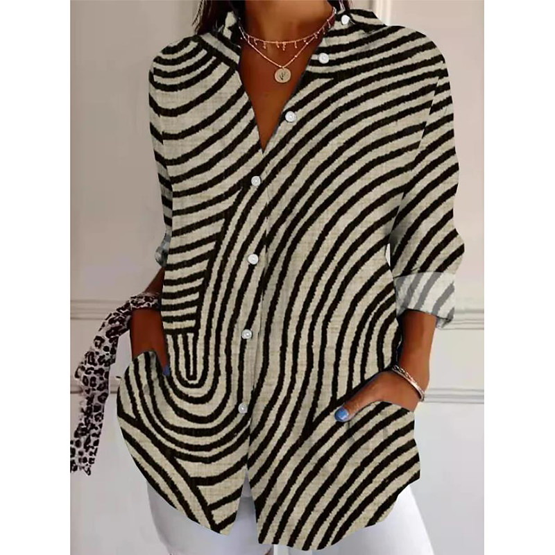 Women's Shirt Button Down Tunic Shirt Collar Long Sleeve Graphic Geometric Striped Vintage Tropical Daily Regular Tops Work Daily Holiday s Print White Yellow Red Blue Orange Spring