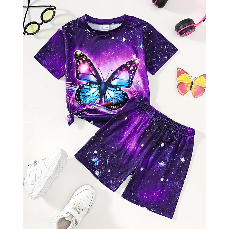 Girls' 3D Graphic Butterfly T-shirt Shorts Set Short Sleeve Summer Spring Sports Fashion Daily Kids 4-12 Years Crew Neck Outdoor Vacation Sports Tailored Fit