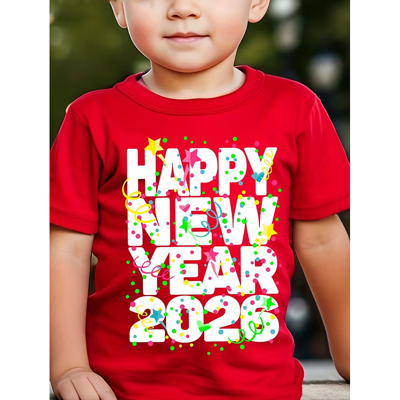 Cotton Kids Boys' 2026 New Year'S Party Black Red Graphic Letter Number T shirt Blouse Crew Neck Short Sleeve Outdoor Dailywear Fashion Streetwear Designer Printing Summer