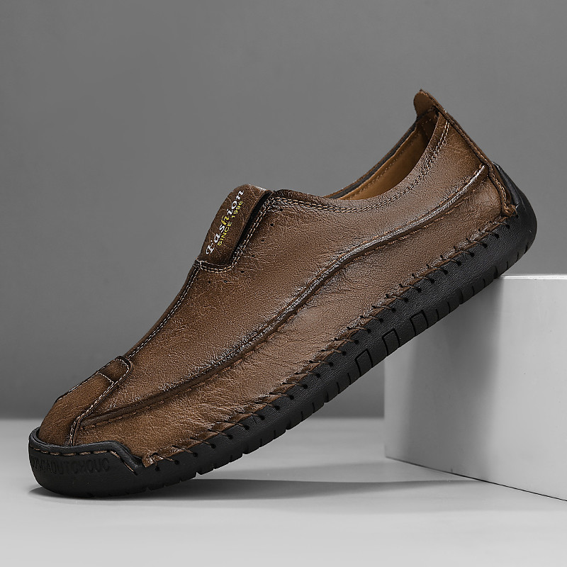 Men's Casual Brown Lace-Up Shoes – Comfortable Everyday Sneakers with Black Accents and Textured Sole