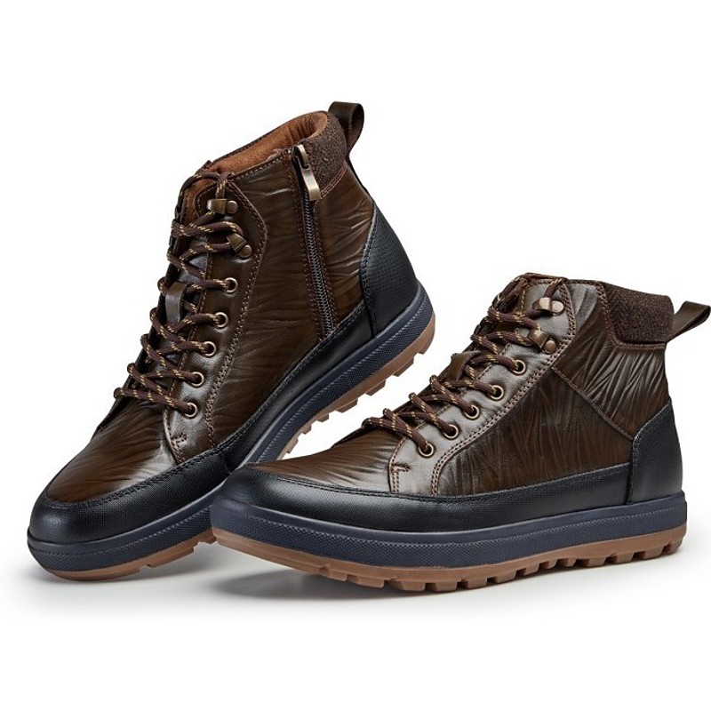 Men's Brown Hiking Boots – Durable Faux Leather Sneakers with Traction Sole for Outdoor Adventures Winter Wear