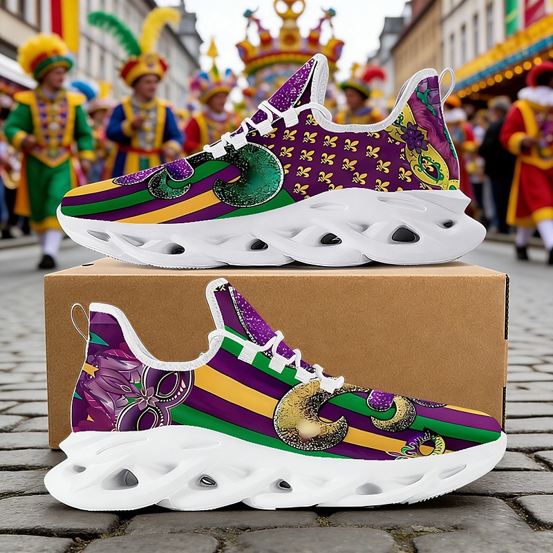 Women's Carnival Comfy Sneakers – Lightweight Cushioned Sole, Mardi Gras Colorway, Bold Performance Style for Dancers, Festival Goers, Parades and All-Day Walking