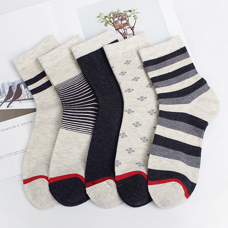 Men's 10 Pairs Multi Packs Socks Running Socks Casual Socks khaki Color Striped Vacation Sports Outdoor Daily Basic Medium Spring Fall Fashion Casual