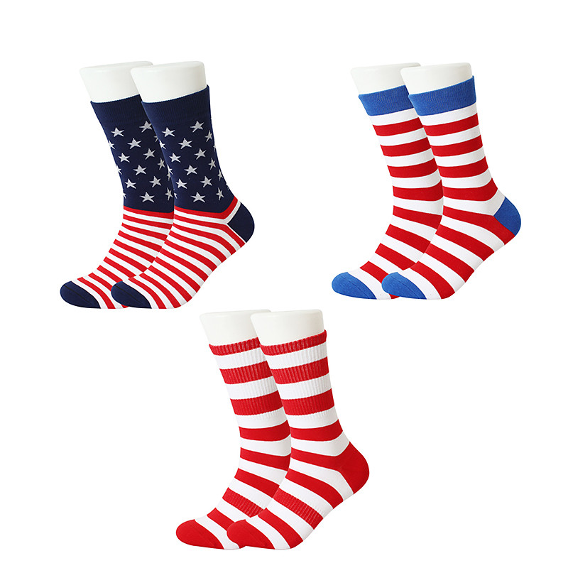 Men's 3 Pairs Socks Running Socks Casual Socks Blue Red Color Stars and Stripes Casual Outdoor Vacation Medium All Seasons Fashion Streetwear