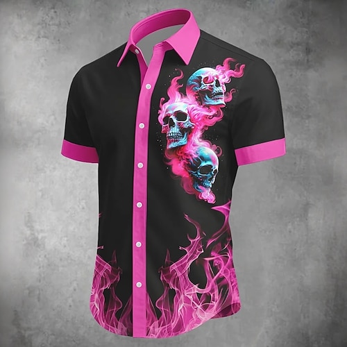 Camicia da uomo Costumi Rosa Camicia Button Up Maniche Lunghe Horror Scuro Vacanza Festa Abbigliamento Sera Quotidiano Estate Primavera e Autunno Collo Grandad Collo Band Camicie Stampate 3D