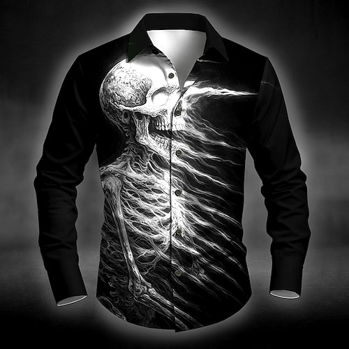 Camicia Costumi Teschi da Uomo Camicia Button Up Manica Corta Stile Gotico Scadenza Estate Primavera Camicie Collo 3D Stampate Nera 1 Nera