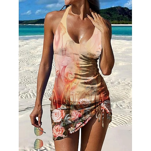 Per donna Costumi da bagno Tankini Vestito da spiaggia Shorts Costume da bagno Controllo della Pancia Vita alta Snello Senza schiena Vacanza Abbigliamento da Spiaggia Floreale Scollo a V Senza Maniche