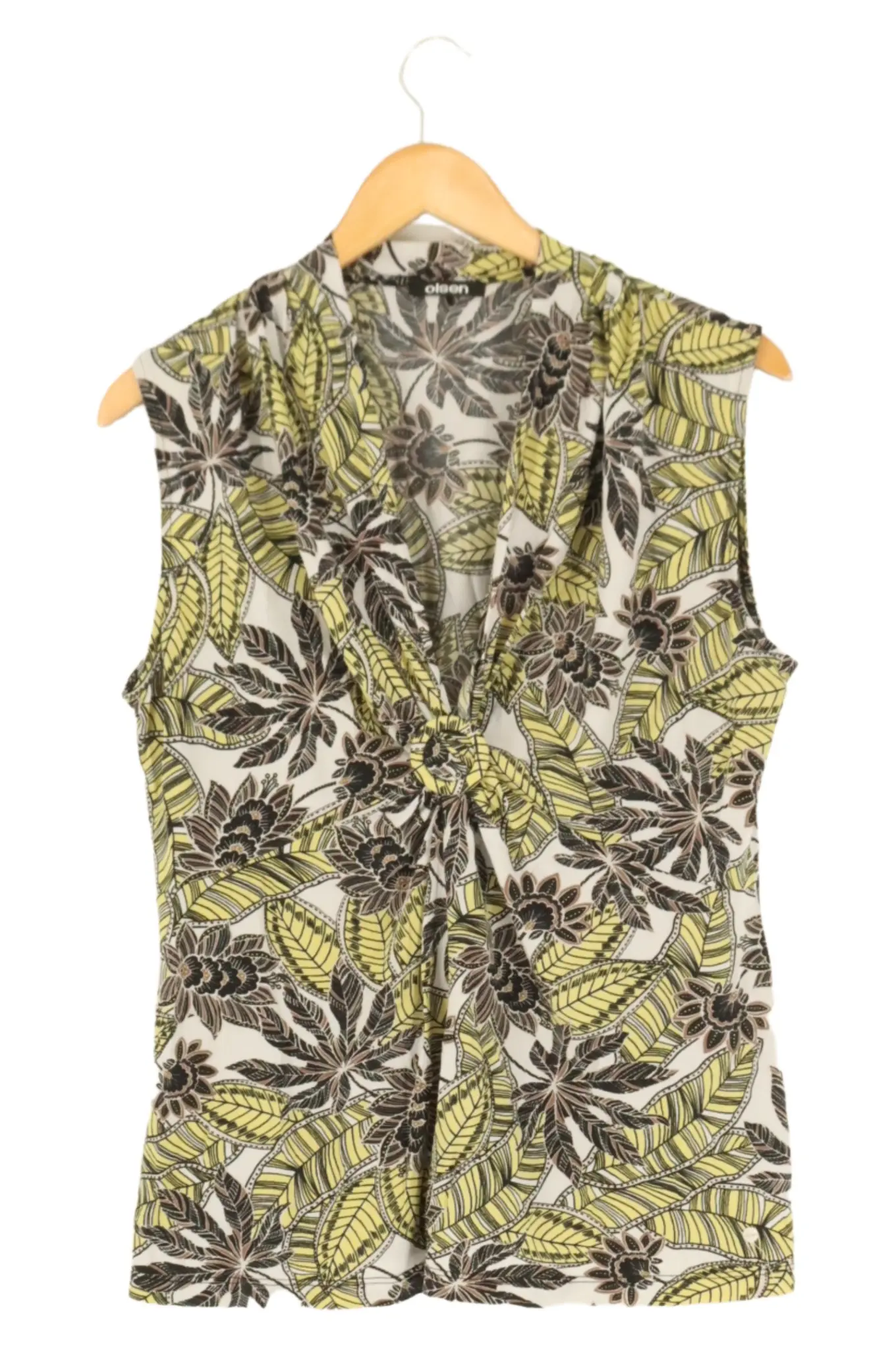 OLSEN Bluse Gr. 42 Mehrfarbig Ärmellos Tropisches Muster Damen