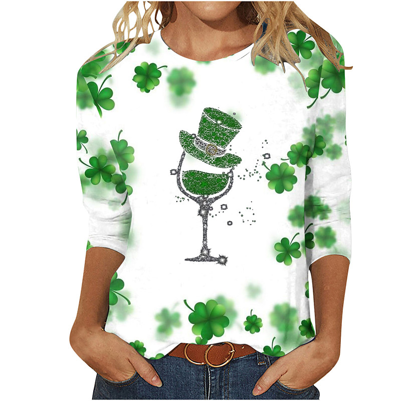 St. Patrick's Day Women's Lucky T Shirt Shamrock Fashion Long Sleeve Round Neck Regular Tops Casual Print Grass Green White Light Green Dark Green Green Spring Fall