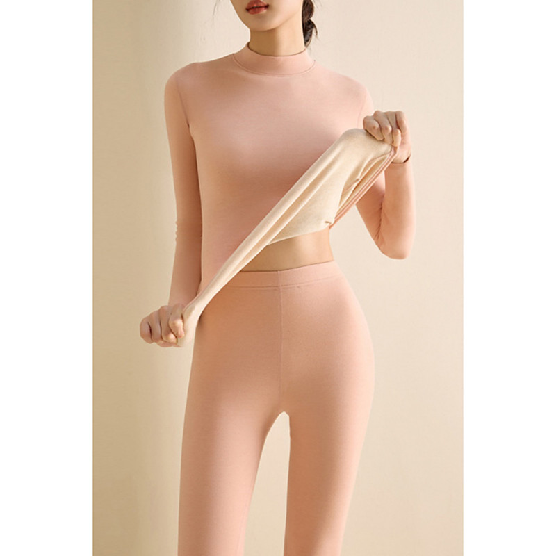 Women's Thermal Underwear Pajama Set Casual Comfort Pure Color Elastic Waist Pant Home Daily Long Sleeve Mock Neck Black Pink Light Brown Green Khaki Spring Fall Winter Tailored Fit
