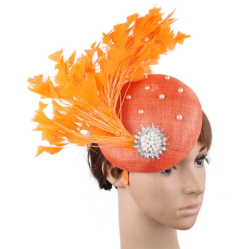 Fascinators Hats Headpiece Flax Formal Kentucky Derby Horse Race Ladies Day Cocktail Elegant Fashion Glam With Feather Headpiece Headwear