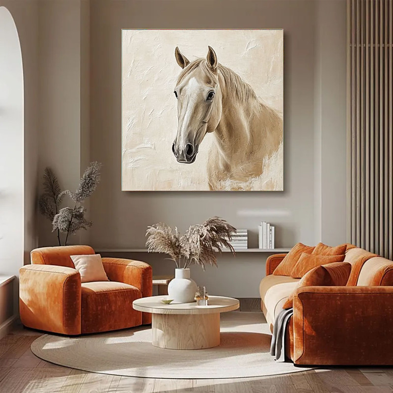 Hand Painted Abstract Horse Painting Large Abstract Animal Painting Beige Wall Art Modern Abstract Art Large Canvas Art Acrylic Painting
