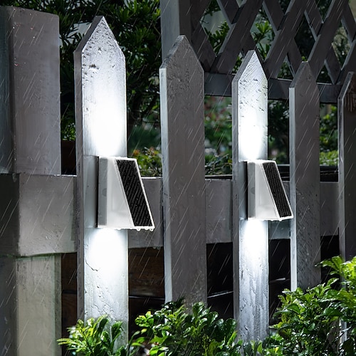 2 Stück Solar-Wandfluter für den Außenbereich, IP65 wasserdicht, 4 LEDs, dekorative LED-Lampen für Garten, Hof, Zaun, Treppe, Stufen, Terrasse, Rasen und Wege
