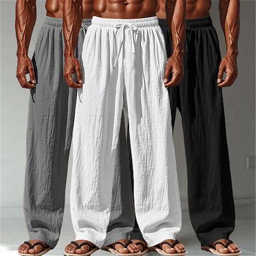 Per uomo Pantaloni di Lino Pantaloni Pantaloni Estivi Pantaloni Larghi Pantaloni da Spiaggia Coulisse Tasca Confezione multipla Semplice Comodità Leggero Lunghezza intera Yoga Casuale Quotidiano