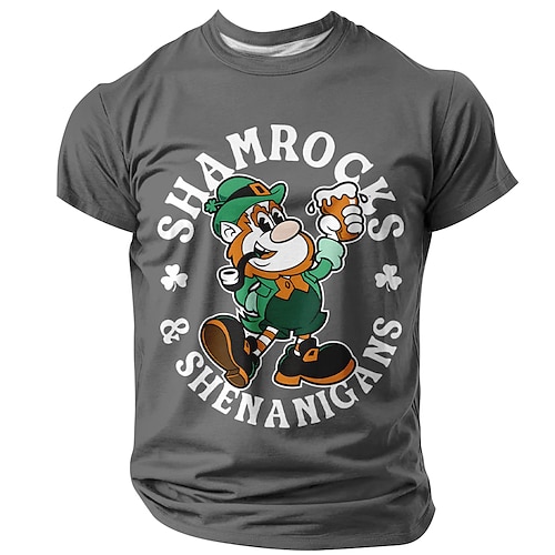 San Patrizio Per uomo Trifoglio Irlandese fortunato maglietta Manica corta maglietta Stampa 3D Camicia Informale Giornaliero Nero Verde Grigio Primavera estate Abbigliamento S M L XL XXL XXXL