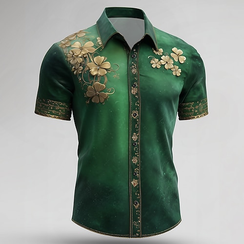 Festa di San Patrizio Per uomo Quadrifoglio Trifoglio Camicia Camicia Estiva Camicia con Bottoni Manica Corta Vintage Retrò Feste Ferie Estate Primavera Collo ripiegato Stampa 3D camicie con colletto