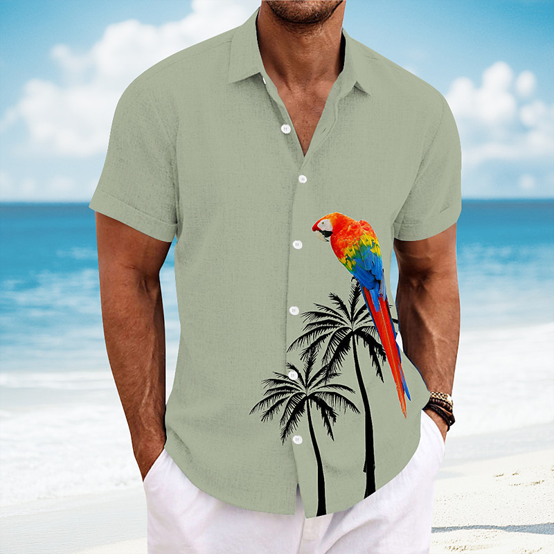 Men's Bird Coconut Tree Parrot Casual Shirt Summer Hawaiian Shirt Button Up Shirt Short Sleeve Hawaiian Resort Vacation Holiday Beach Wear Summer Spring Turndown 3D Print Collared Shirts White Blue