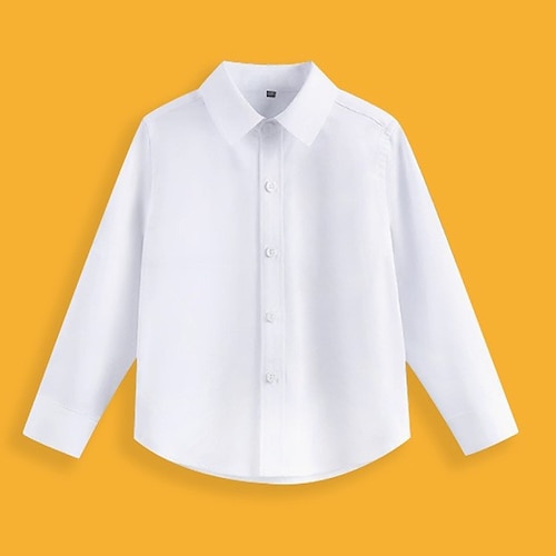 Jungenhemden, einfarbig, langärmelig, mit Knöpfen, lässig, neutralweiß, Frühlingskleidung, ab 4 Jahren
