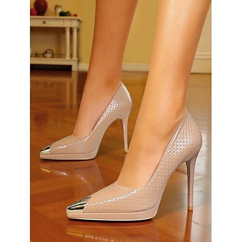 scarpe con tacco alto a punta argentate da donna - décolleté stiletto metallizzate lucide con trama intrecciata per la vita notturna e le feste