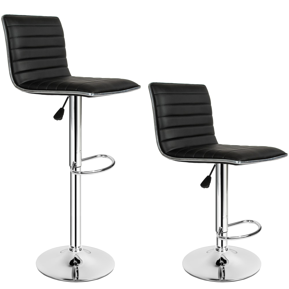 Chaise-de-bar Yulo-Flex cuir véritable noir pied pivotant réglable en hauteur acier inoxydable