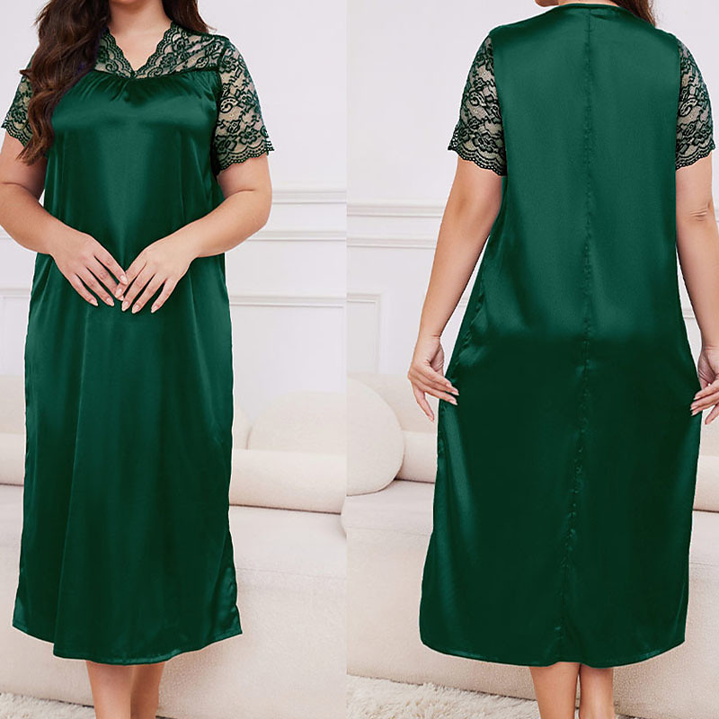Women's Loungewear Nightgown Fashion Casual Soft Pure Color Patchwork Dress Home Vacation Short Sleeve V Neck Champagne Pink Camel Purple Green Summer Spring Fall Loose Fit