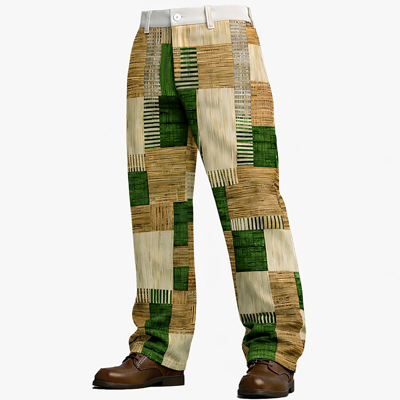 Men's Geometric Color Block Patchwork Trousers Dress Pants Suit Pants Mid Waist Casual Outdoor Dailywear Relaxed Fit Flat Front Dress Pants with Side Pockets Spring Fall 3D Print Dark Red Green Dark