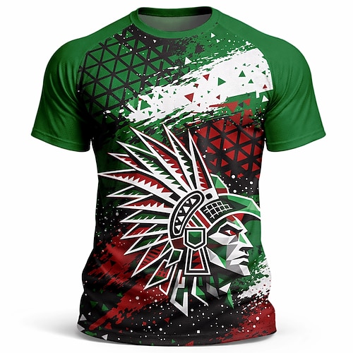 Mexiko-inspiriertes Herren-Fußballtrikot – grün-weiß-rotes Grafik-Fan-Shirt mit atmungsaktivem, schnelltrocknendem Mesh-Gewebe und UPF 50 Sonnenschutz für die Turniersaison