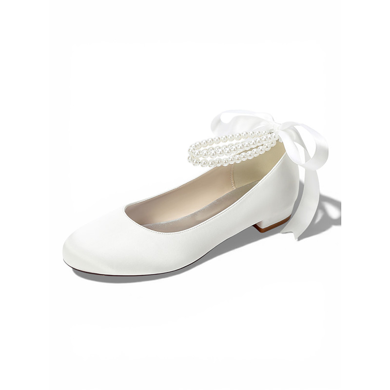 Women's Ivory Pearl Ankle Strap Flats, Elegant Ballet Bridal Shoes for Outdoor Garden Lawn Wedding